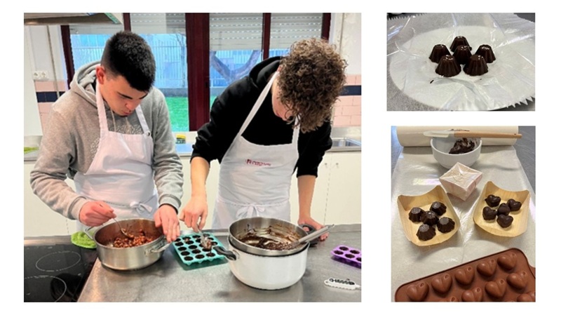 O curso de 11.º ano de Técnico de Cozinha e Pastelaria, no âmbito das atividades práticas simuladas de pastelaria, e para comemorar o dia de S. Valentim (Dia dos Namorados), propôs aos alunos o desafio de elaborarem bombons de chocolate, de forma a brindarem as namoradas.