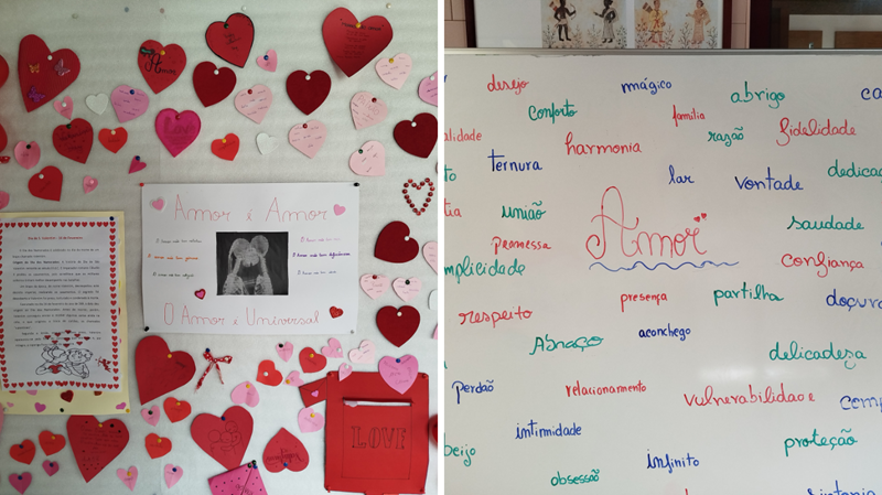 A semana contou ainda com o visionamento de excertos de filmes temáticos e a audição de playlists preparadas para a ocasião, criando um ambiente acolhedor dentro da sala de aula e reforçando a importância dos afetos no quotidiano escolar.