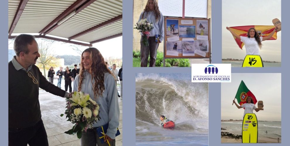 No dia 10 de novembro de 2025, o Professor Francisco Pimenta, Diretor do AEDAS, prestou justa homenagem à aluna Luana Dourado, da turma 11.º CT2, pela sua grande conquista do Título de CAMPEÃ DA EUROPA DE BODYBOARD, em Marrocos.