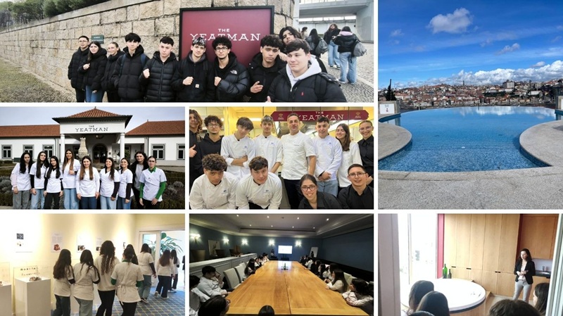 No dia 12 de fevereiro, as turmas dos Cursos Profissionais de 12.º ano de Técnico de Restaurante/Bar e Técnico de Cozinha/Pastelaria e de 11.º ano de Esteticista realizaram uma visita de estudo ao Hotel The Yeatman, numa experiência muito enriquecedora e inspiradora para todos os alunos. As alunas de Esteticista tiveram a oportunidade de visitar o SPA, contactando de perto com um espaço de excelência ligado à área do bem-estar e dos cuidados de beleza. Já os alunos de Restaurante/Bar e Cozinha/Pastelaria conheceram a zona da cozinha e do restaurante, explorando um contexto profissional de elevado prestígio.